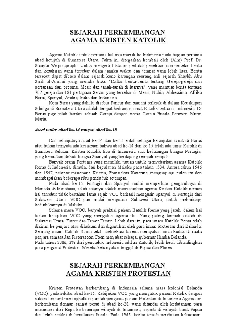 Sejarah dan perkembangan agama kristen. Marthin Luther mengungkapkan dalil-dalil yang menentang langsung berbagai kebijakan dan ajaran resmi yang dikeluarkan oleh gereja Khatolik pada masa itu. Awal perkembangan agama Kristen di Indonesia Pada hakikatnya agama Kristen muncul dari ketidakpuasan Marthin Luther seorang pastur dan pengajar theologi agama Katholik di Jerman. Pada tahun 1512 pertama kali kapal Portugis mendarat di Hitu di Pulau Ambon Kepulauan Maluku.