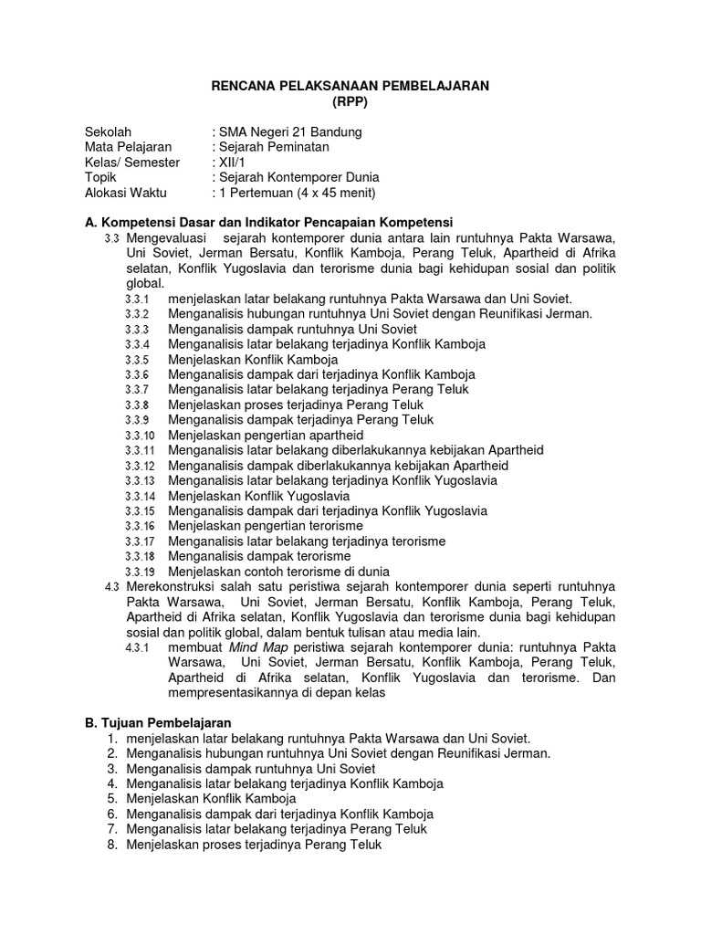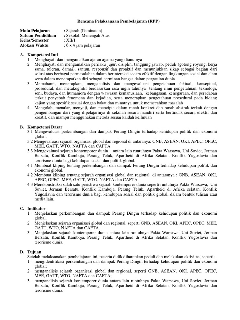 Doc Rpp 10 Sejarah Kontemporer Dunia Docx Ulin Ni Mah Academia Edu